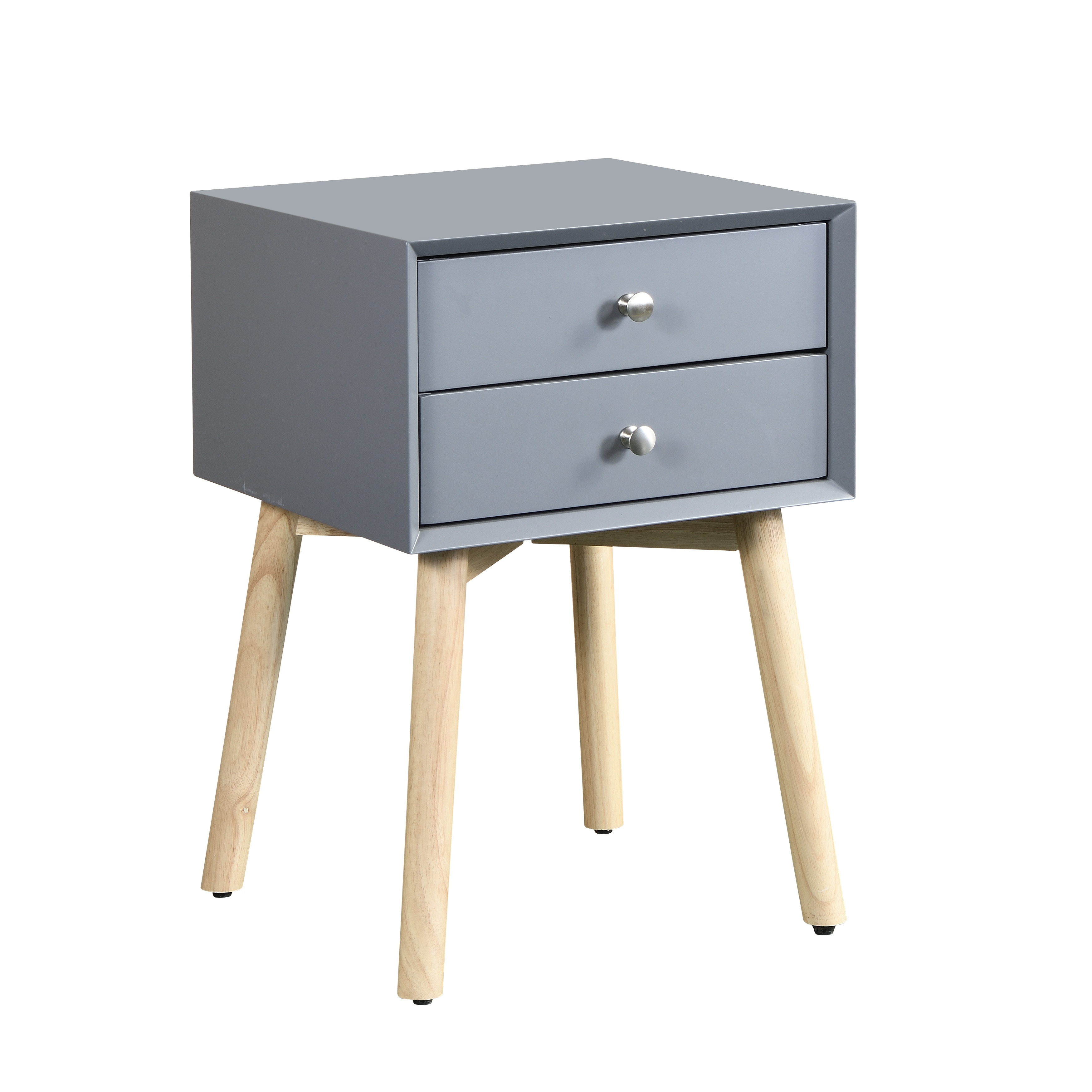 Side Table Bedside Table With Two Drawers And Rubber Wood Legs Mid-Century Modern Storage Cabinet