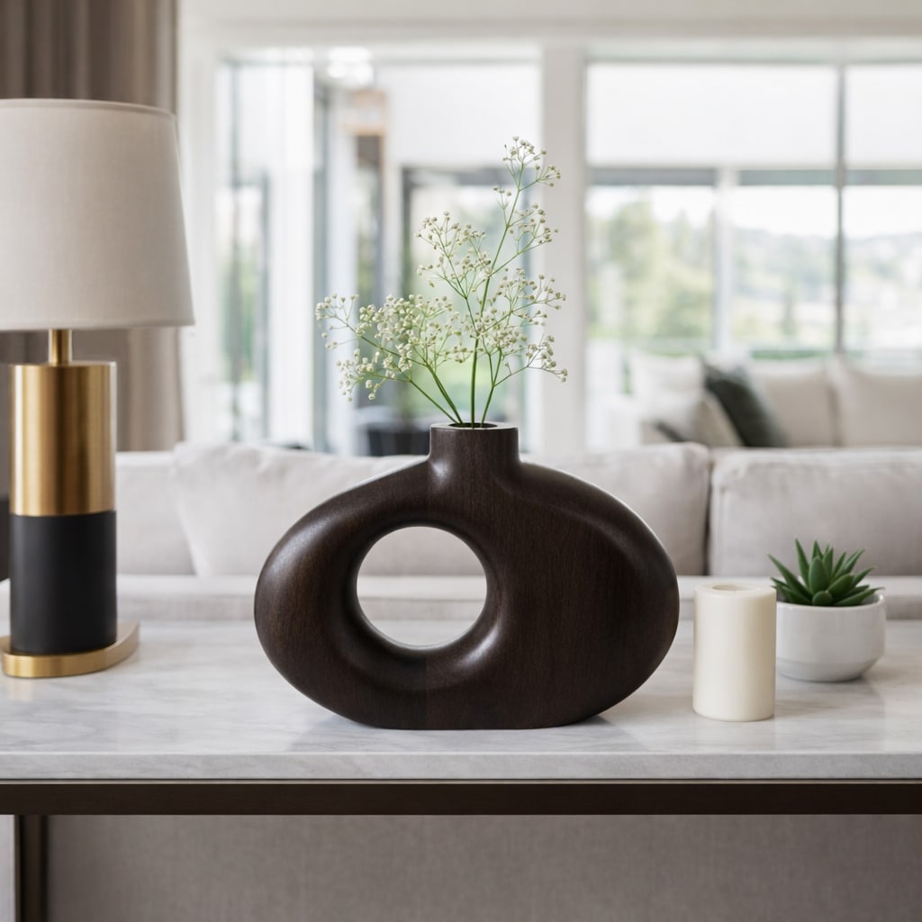 Mango Wood Modern Vase with Round Cutout Silhouette Minimalist Design