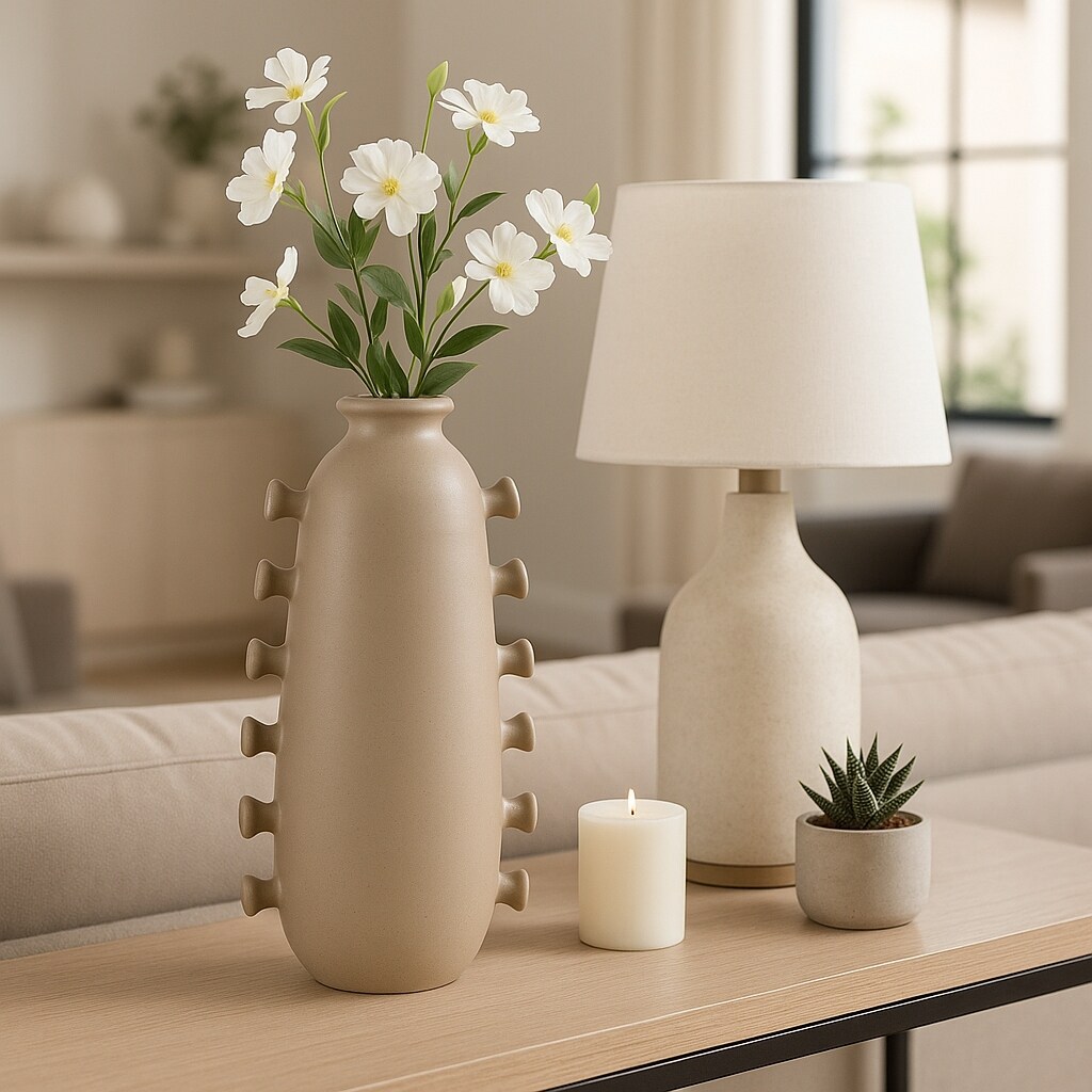 Unique Artistic Table Vase with Side Detailing - Tan