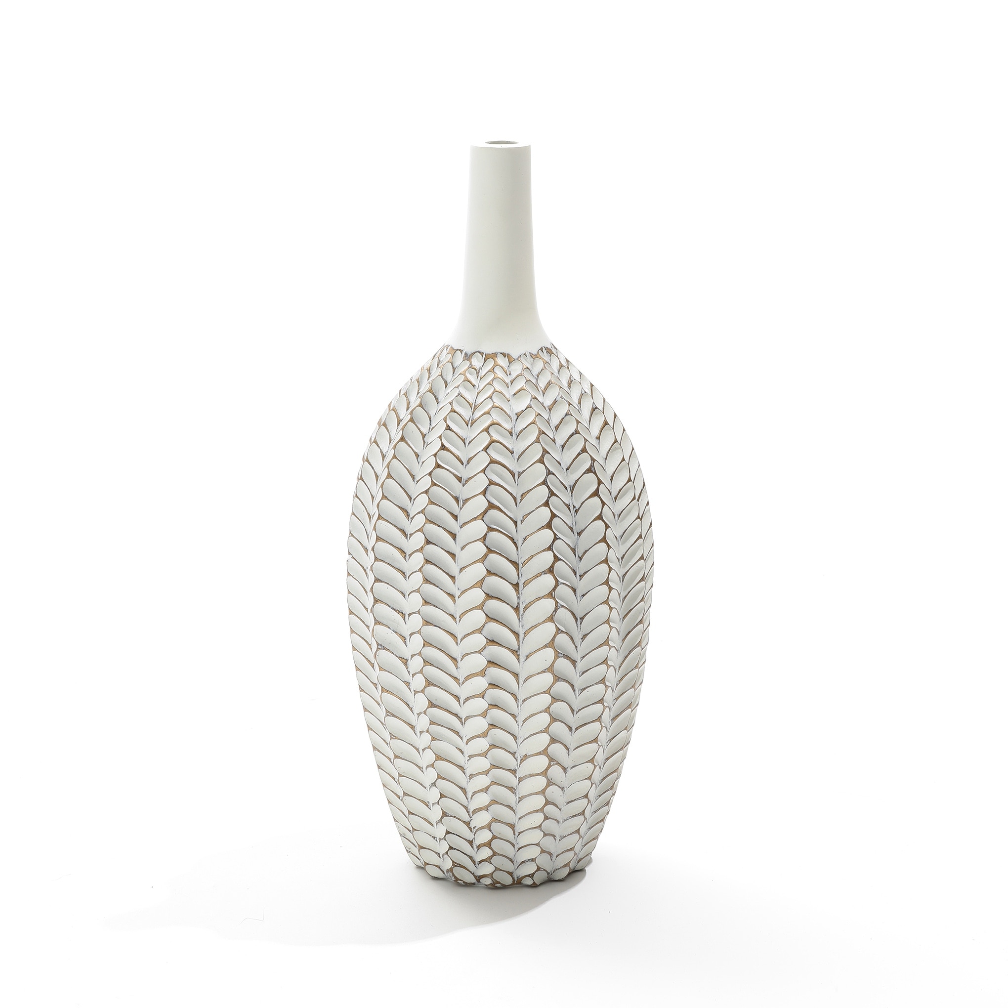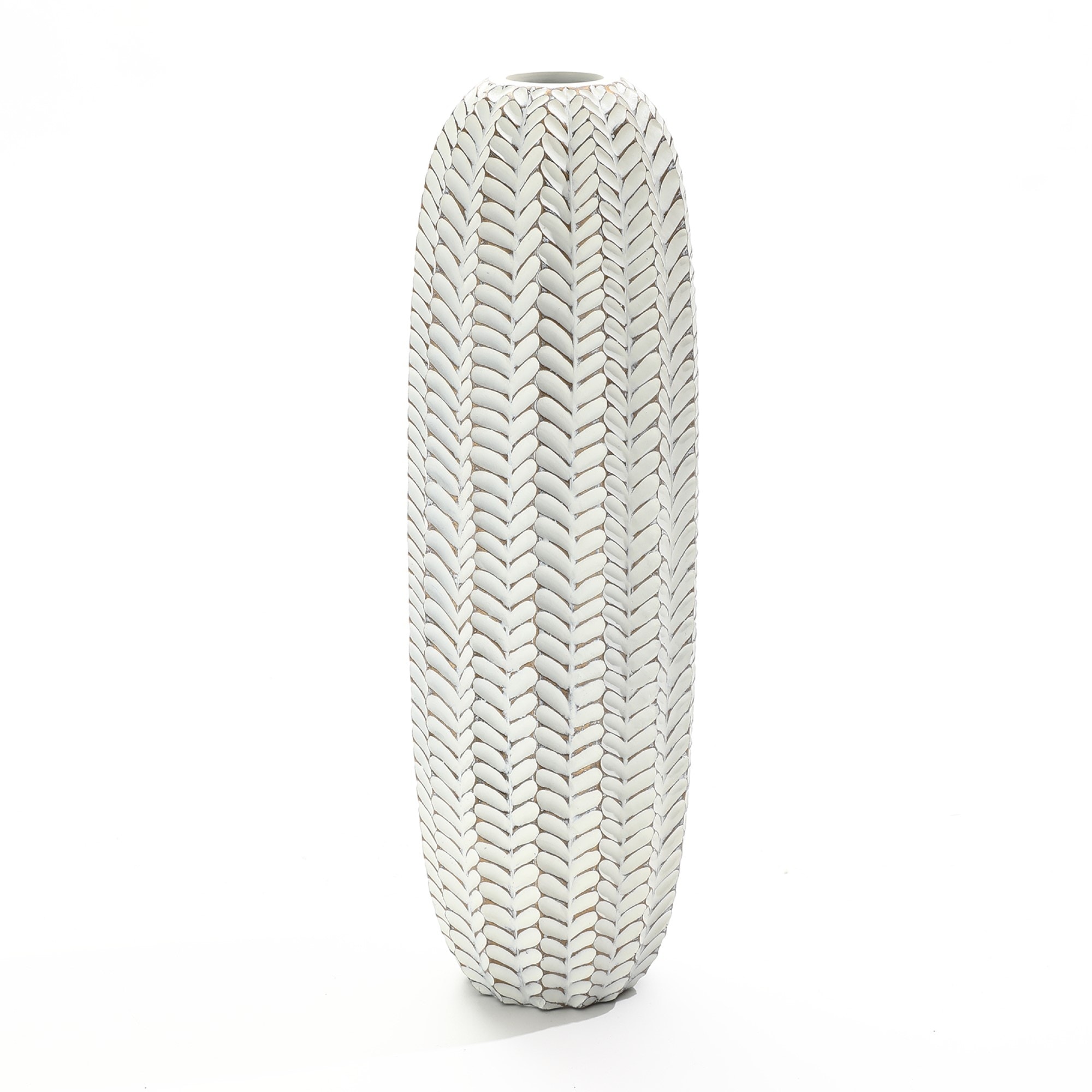 White Ceramic Handmade Decorative Vase - 9"W, 37"H