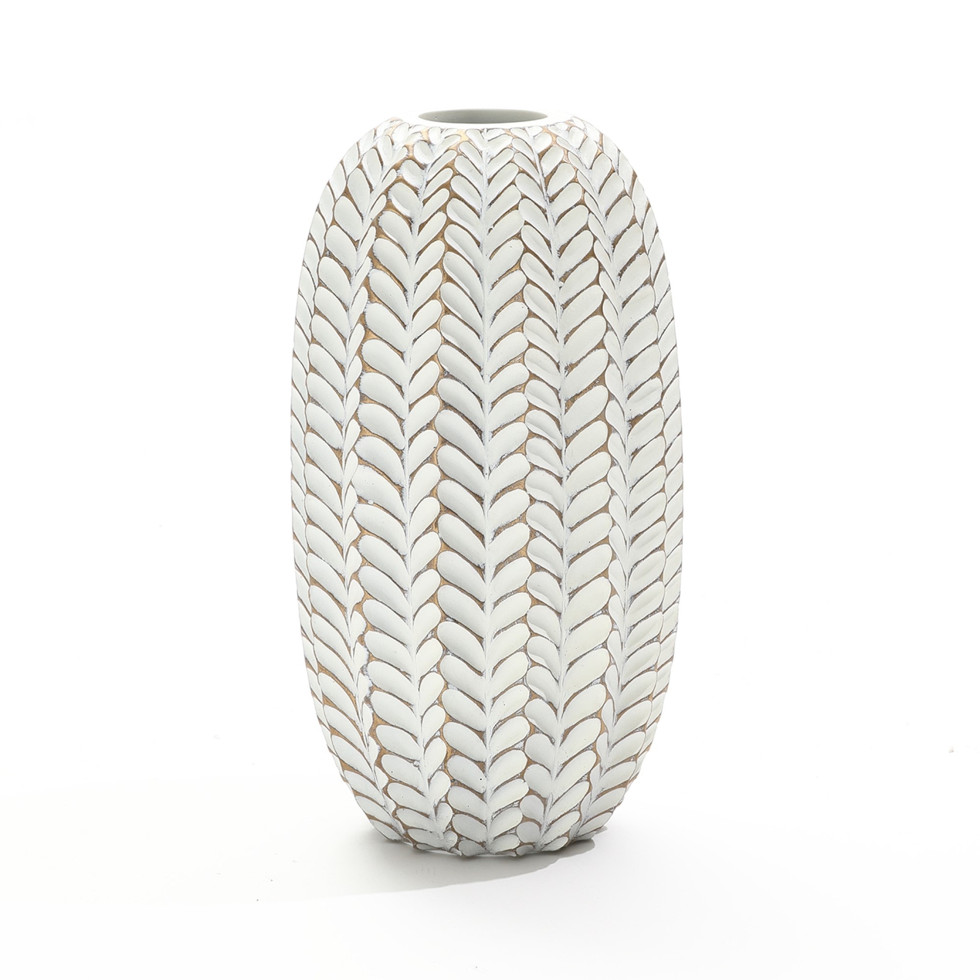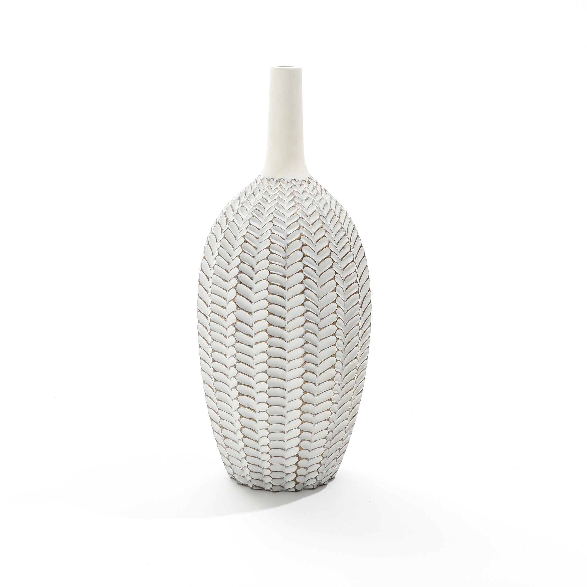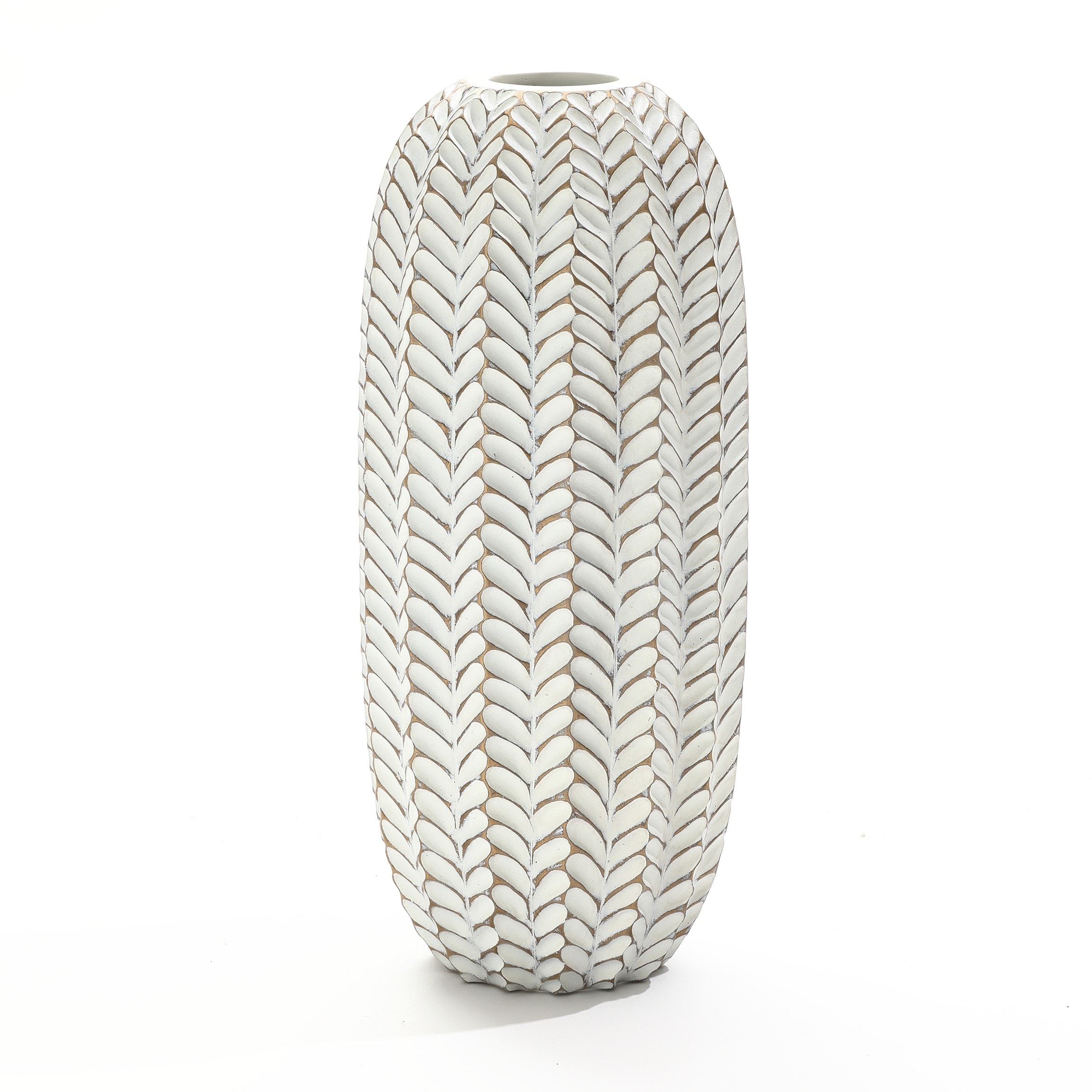 White Waves Ceramic 15.75-Inch Tall Round Vase