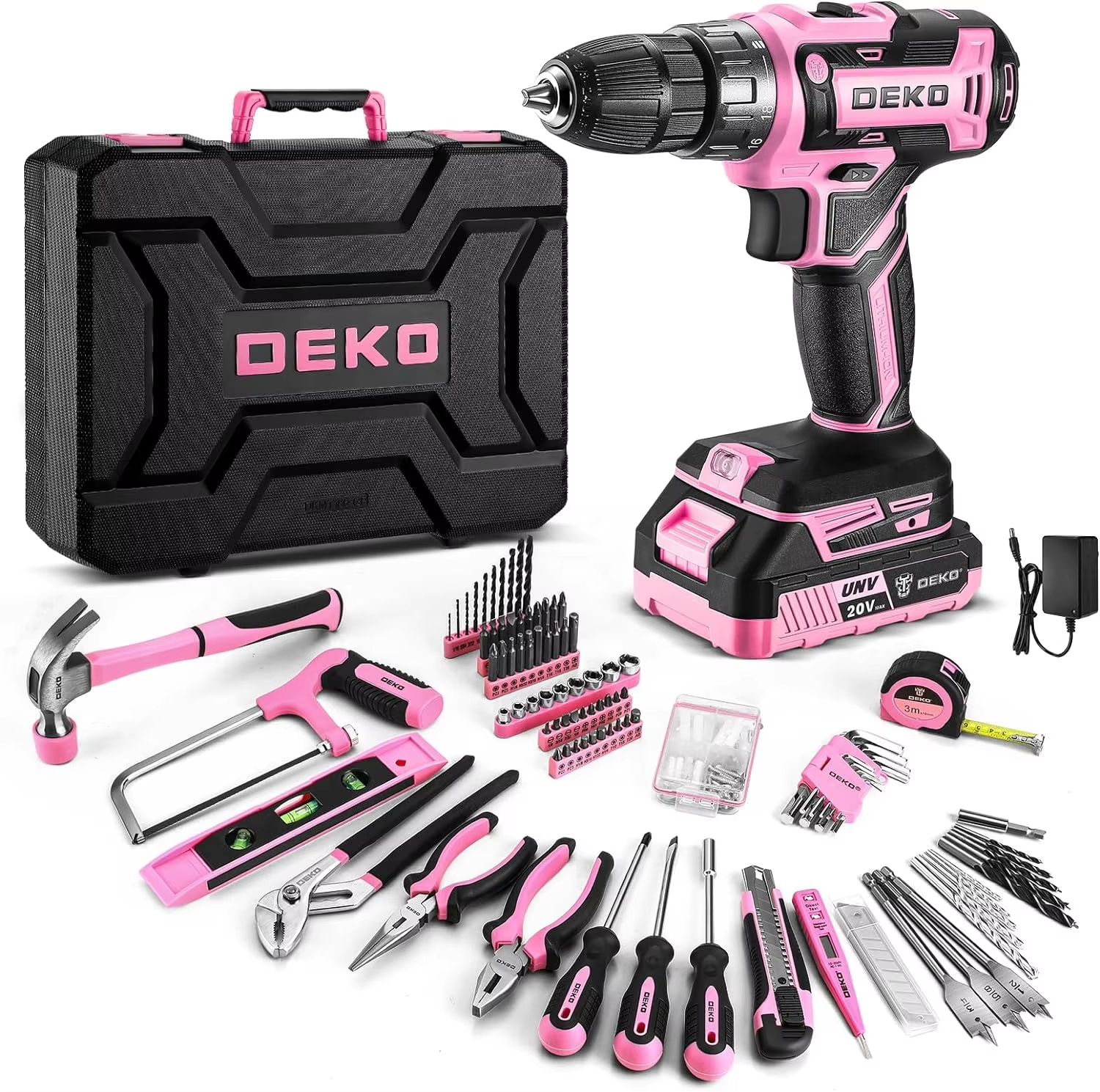 DEKO Pink 20V Cordless Power Drill Kit With Battery And Portable Tool Box DEKO Pink 20V Cordless Power Drill Kit With Battery And Portable Tool Box