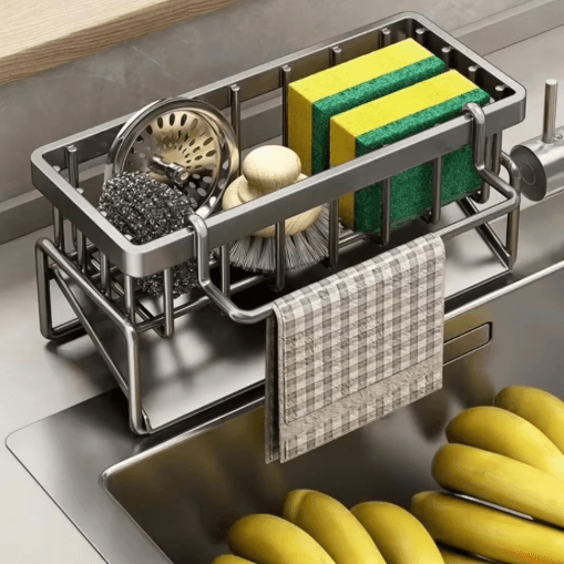 Stainless Steel Sink Organizer Multi Layer Drain Rack With Soap & Sponge Holder grey No Towel Bar