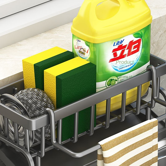 Sponge Rack Water Sink, Kitchen Shelf Cleaning Cloth, Storage Draining Rack, Household Detergent Artifact dark Grey