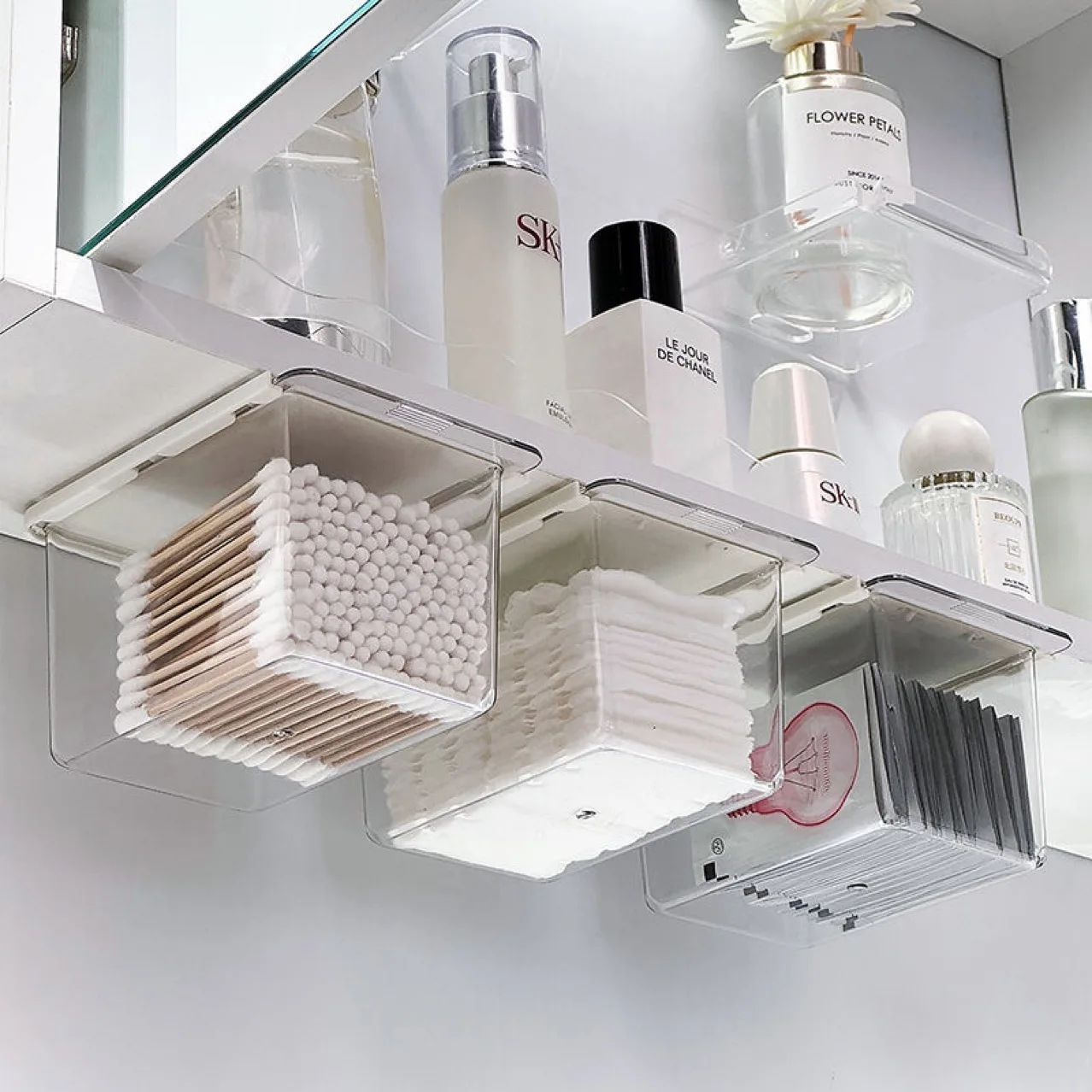 Bathroom Cotton Stick And Makeup Storage Box With Pull Out Drawer Under Mirror Cabinet 1pc