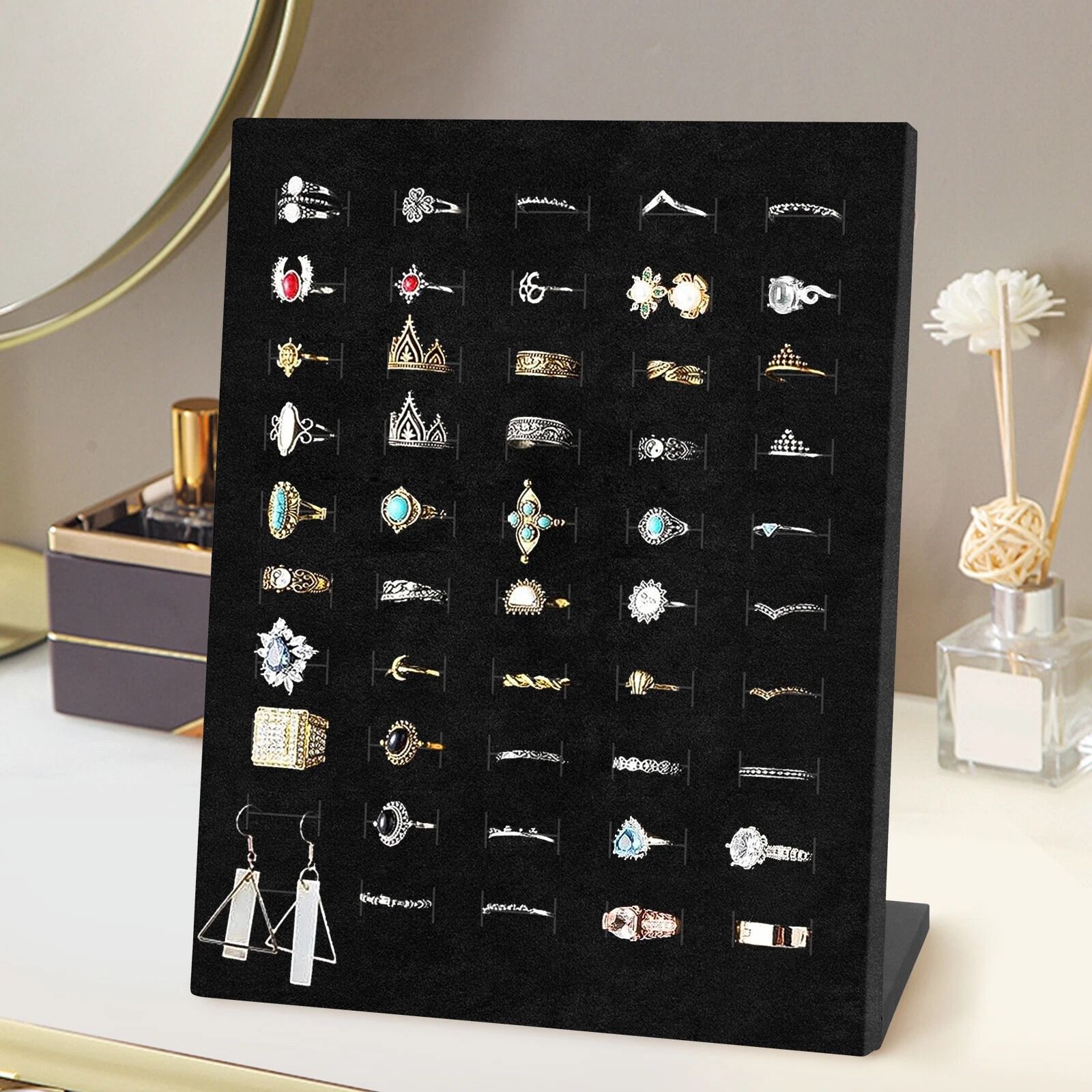 Velvet Ring Display Stand Jewelry Organizer For Rings, Earrings, & Pendants Velvet Ring Display Stand Jewelry Organizer For Rings, Earrings, & Pendants