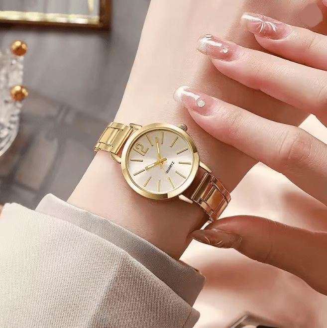 Executive Stainless Steel Business Watch Luxury Classic Round Dial Quartz Timepiece For Women gold White