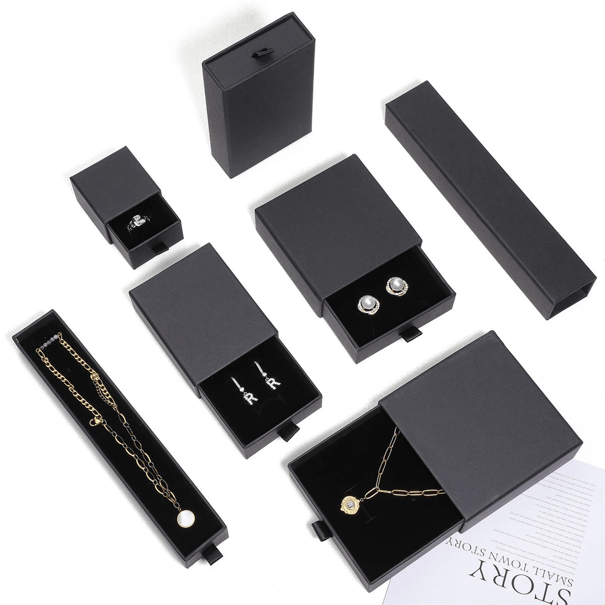 Luxury Drawer Style Jewelry Box Elegant Black Gift Packaging 1