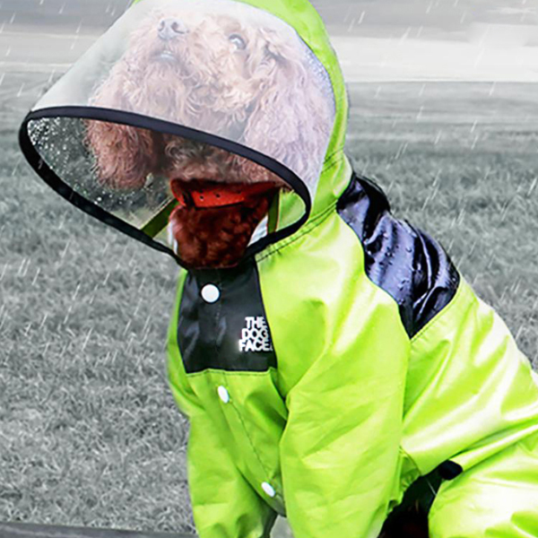 Waterproof Dog Raincoat Jacket For Dogs Stylish Pet Coat With Dog Face Design, Water Resistant & Comfortable Pet Cloth green l